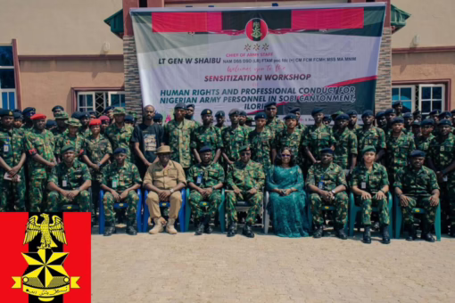 In its sustained effort to promote professionalism and respect for International Humanitarian Law (IHL) in the Nigerian Army’s (NA) ongoing operations within and outside the country, the Army Headquarters Department of Civil-Military Affairs (AHQ DCMA) has conducted a sensitisation workshop on Human Rights and Professional Conduct for NA personnel in Kwara State. The event was held on Wednesday, 5 November 2025, at the Major General SA Adebayo (Rtd) Multi-Purpose Hall, Sobi Cantonment, Ilorin, Kwara State.