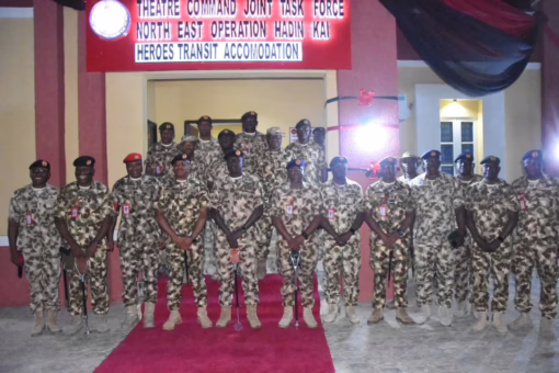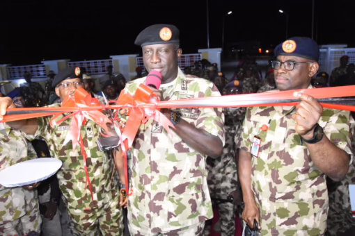 Highlights of the visit included an operational briefing at the Theatre Command Headquarters, commissioning of the Heroes Transit Accommodation at Maimalari Cantonment, groundbreaking ceremony for the construction of 4 x 30-family Corporal and Below quarters, inspection of combat platforms and visits to wounded-in-action personnel at the 7 Division Military Hospital and Services, as well as frontline troops deployed at Bama and adjoining sectors.