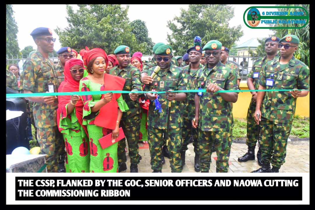 Earlier, the General Officer Commanding (GOC), 6 Division, NA, Major General Emmanuel Eric Emekah, while welcoming his predecessor to the commissioning of the transit accommodation for the GOC’s staff, said he was delighted to have him in Port Harcourt Barracks. He added that the event was significant, as it not only consolidated the laudable achievements recorded under his command as the immediate past GOC, but also reflects the drive to align with the COAS Command Philosophy, particularly as it relates to troops’ welfare and the provision of befitting living and working conditions for them.