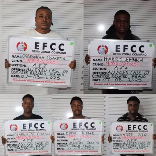The Benin Zonal Directorate of the Economic and Financial Crimes Commission on Wednesday, August 13, 2025 secured the conviction and sentence of five internet fraudsters before Justice M. Itsueli of Edo State High Court, sitting in Benin City.