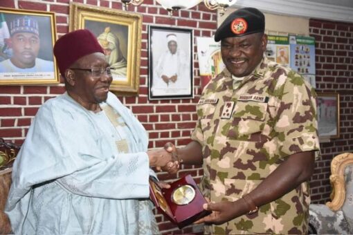 In his remarks, the Shehu congratulated the GOC on his well-deserved appointment and commended the doggedness and untiring efforts of the Nigerian Army in the fight against insurgency which he says has brought relative peace and tranquility in Borno State.