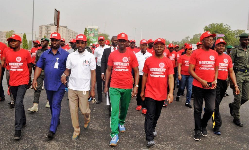 Led by Ibrahim Magu, Acting Chairman, EFCC, the walk which took-off from the EFCC Head Office, Wuse 2, Abuja en route Unity Fountain to Area 11 junction, has as its theme, “United Against Corruption for Development Peace and Security”.