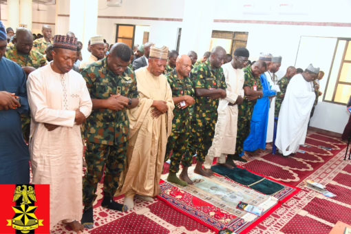 Delivering sermon during the Juma’at pryers, the Acting Deputy Director, Islamic Affairs, Army Headquarters Garrison, Lieutenant Colonel Musa Abbas, drew his inspiration from the Holy Qur’an, affirming that life and death are divine decrees. He noted that, those who lay down their lives in the pursuit of justice and peace are eternally honoured before Allah. “Our fallen heroes live on in the legacy of peace they helped secure and in the hearts of the nation they served.” averred Lieutenant Colonel Abbas while enjoining personnel to remain steadfast in faith and integrity. He emphasized that true courage lies not in might or rank but in sincerity of purpose and devotion to truth. He offered prayers for divine forgiveness for the departed and for continued peace, strength and unity across Nigeria.