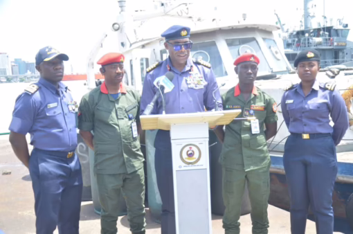 On Thursday, 16 October 2025, the Nigerian Navy Ship (NNS) BEECROFT handed over 4,000 litres of product suspected to be Automotive Gas Oil (AGO) to officials of the Nigeria Security and Civil Defence Corps (NSCDC), Lagos State Command.