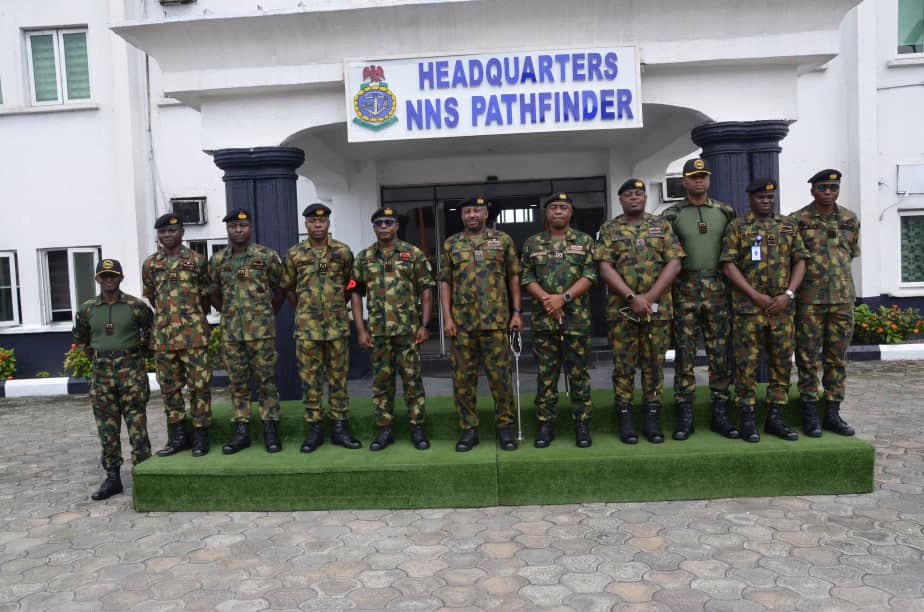 On Monday, 29 September 2025, the Chief of the Naval Staff Advance Inspection Team visited Nigerian Navy Ship (NNS) Pathfinder in line with the Nigerian Navy Schedule of Events 2025. The team, led by Rear Admiral JO Ajodo alongside three other senior officers, was received by the Commander NNS Pathfinder, Commodore CN Aniaku. The visit was aimed at assessing the base’s operational preparedness, efficiency and overall state, as well as identifying its achievements and challenges.