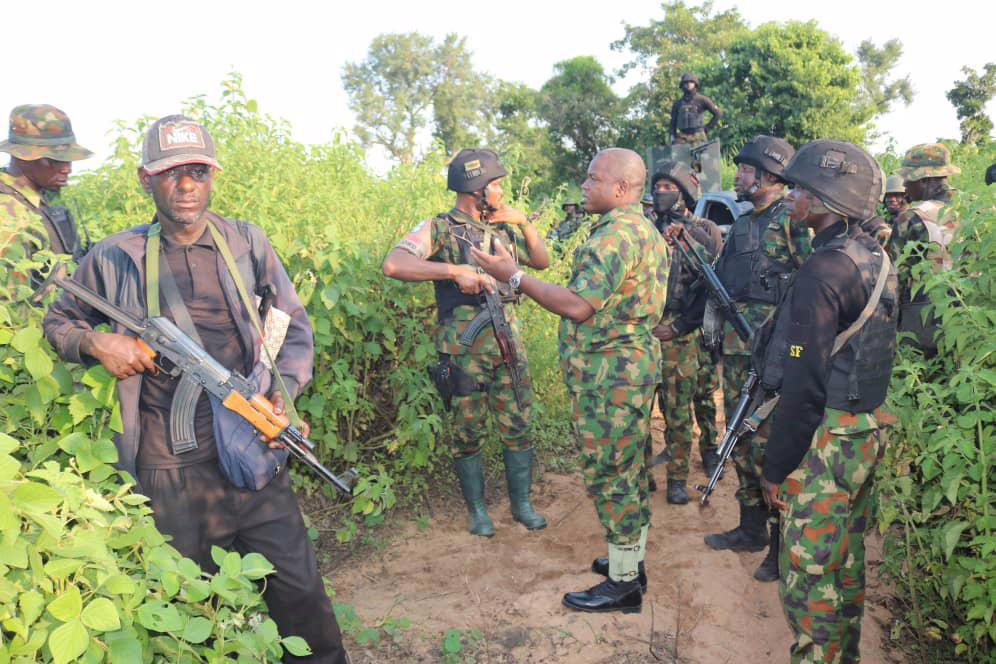 In an effort to boost troops’ morale,the commander 12 Brigade Nigerian Army and Force Commander Operation Accord III Brigadier General Kasim Umar Sidi, led the exploitation further along axis of advance leading to destruction of several several bandits’ settlements while dominating the general area with patrols and ambushes.